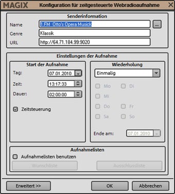 Nach einem weiteren Klick auf die virtuelle Aufnahmetaste speichert MAGIX Webradio Recorder die Titel des Radioprogramms einzeln auf der Festplatte. Informationen wie Interpret, Titel, Album oder Erscheinungsjahr fügt die Software automatisch hinzu. Bei Bedarf programmiert man mit dem MAGIX Webradio Recorder-Timer zeitversetzte Aufnahmen, überspielt Titel auf mobile Geräte oder brennt das Musikarchiv auf eine CD.